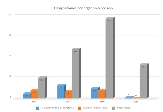 De un total de 287 nombramientos que se realizaron durante la presidencia de Mauricio Macri, 223 fueron en el Poder Judicial, mientras que hubo 35 en el Ministerio Público de la Defensa y 29 en el Ministerio Público Fiscal.