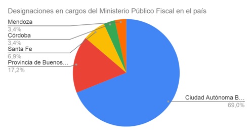 En el caso del Ministerio Público Fiscal hubo 29 designaciones durante el gobierno de Mauricio Macri. El 69% de estas se concentraron en el ámbito territorial la Ciudad Autónoma de Buenos Aires.