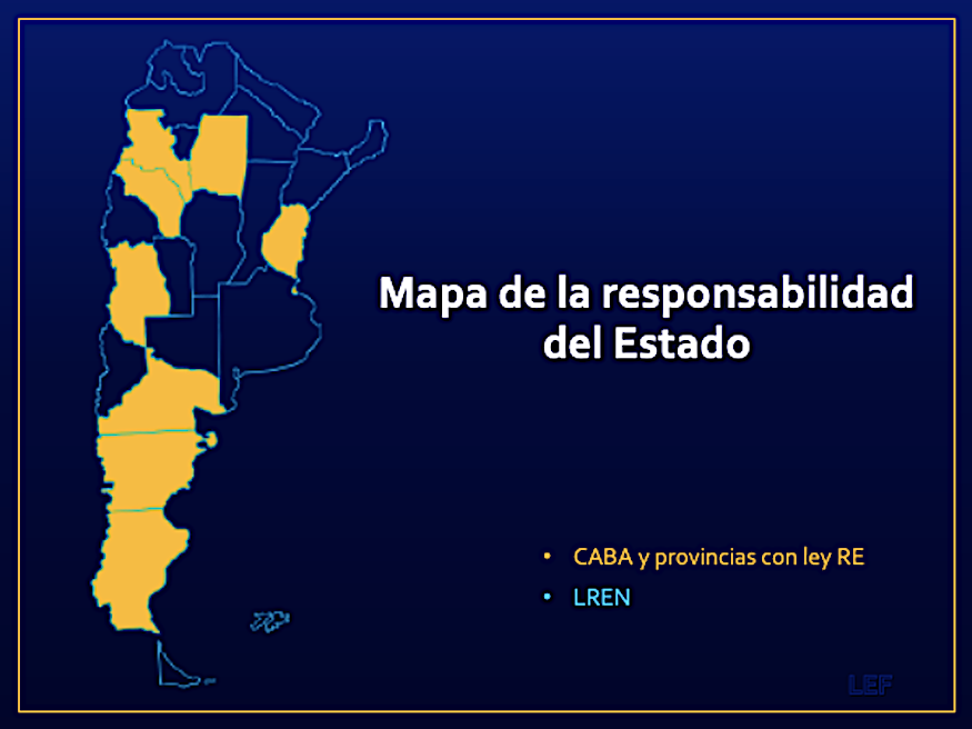 En estos años ocho (8) provincias sancionaron sus propias leyes, a saber: Santa Cruz, Chubut, Río Negro, Mendoza, La Rioja, Catamarca, Santiago del Estero y Entre Ríos[i]. Así queda entonces el mapa de la responsabilidad del Estado con la promulgación de la LPRE: