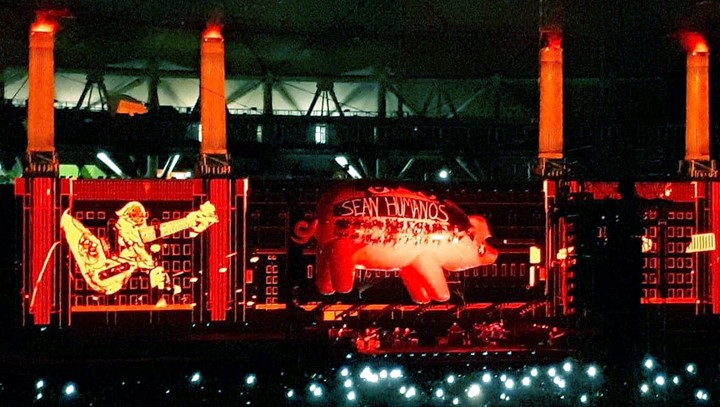 "Sean Humanos" dice en el cerdo gigante que se desplegó en el Estadio Único de La Plata en el año 2018