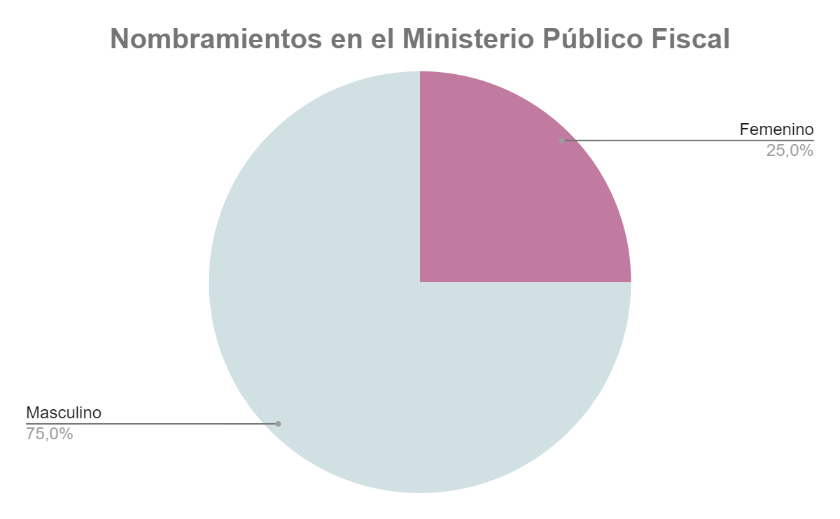En cambio, en el Ministerio Público Fiscal hubo 9 nombramientos, de esa cifra 3 son mujeres.