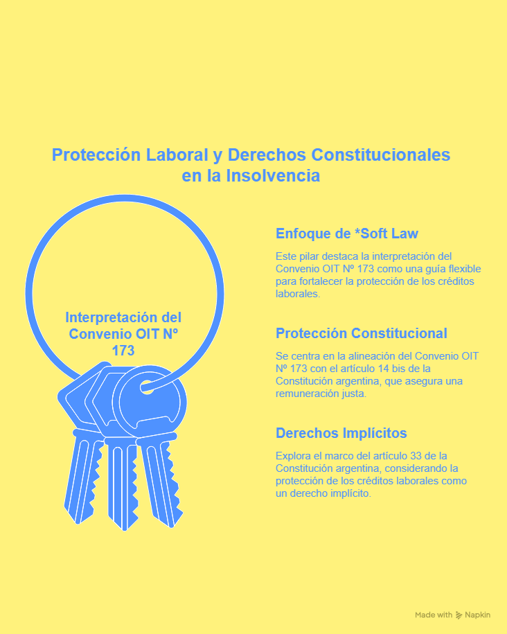 En primer lugar, podría haber subsumido los contenidos del Convenio OIT Nº 173 en la categoría de soft law a efectos ser considerado como una pauta de interpretación y aplicación de la ley 24.522 de concursos y quiebras, lo cual habilitaría a los tribunales anteriores a el Convenio como un criterio orientador que fortalecería la protección especial de los créditos laborales frente a la insolvencia del empleador. De esta manera, los “actos propios” emergentes de la jurisprudencia de tribunal respecto la necesaria protección especial de las acreencias laborales no constituirían exclusivamente un error regresivo, sino que a la par de la reparación constitucional formal, seguirían irradiando una protección pro persona adecuada. Esta interpretación expansiva del soft law evita rigideces formalistas y asegura la efectiva realización de derechos laborales, permitiendo una aplicación dinámica, adaptativa y evolutiva del derecho concursal argentino.